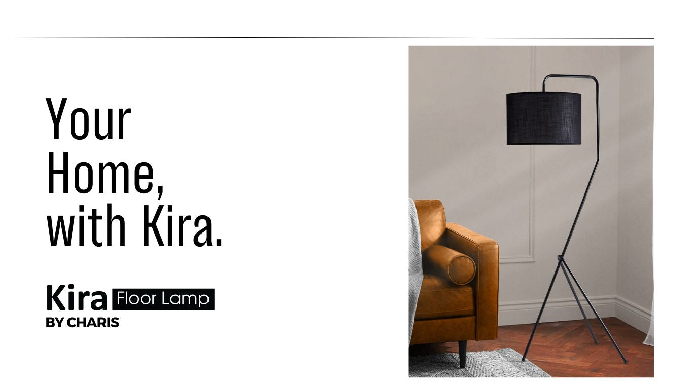 Redefining simple luxury, Kira Floor Lamp by Charis features a blend of eye-catching minimalist design, a triangular / pyramid base stand and a welcoming linen lamp shade for a balanced aesthetic.